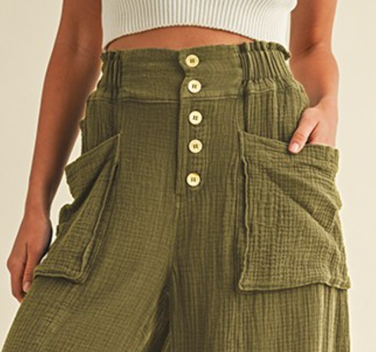 Mineral Wash Fray Boho Pant VINTAGE OLIVE