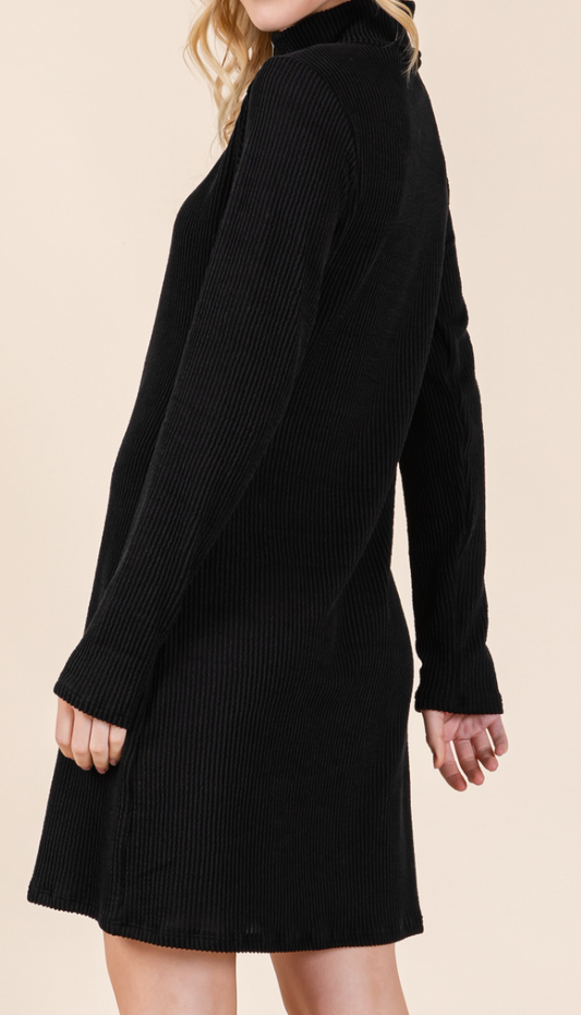 Midi Ribbed 3/4 Zip Dress BLACK