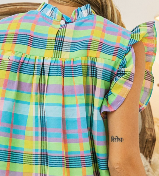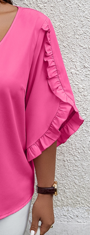 Plus V~Neck Ruffle Petal Sleeve FUCHSIA