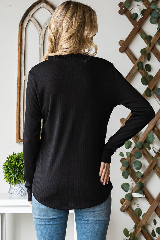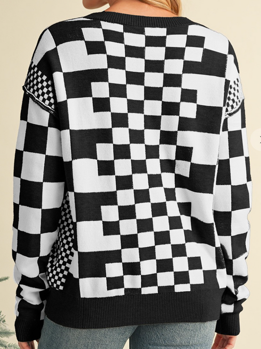 PS Square Zipper Pull Roll Tab Blouse B&W