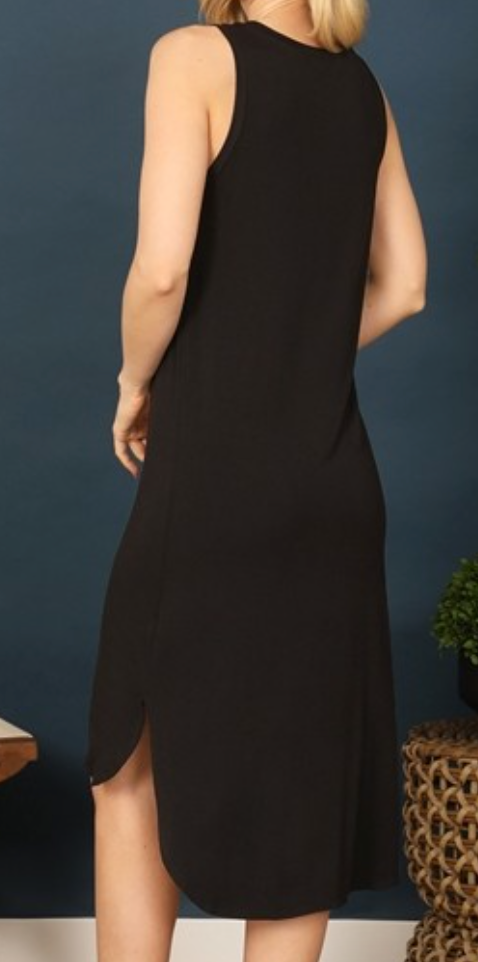 VNeck Sleeveless Pleated Detail Dress BLACK