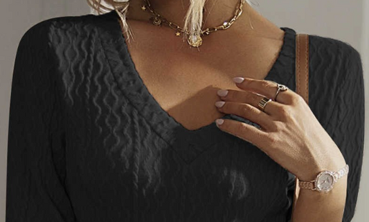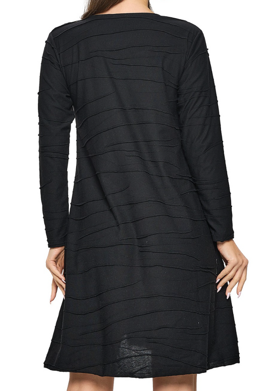 Textured V~Neck Midi Dress BLACK