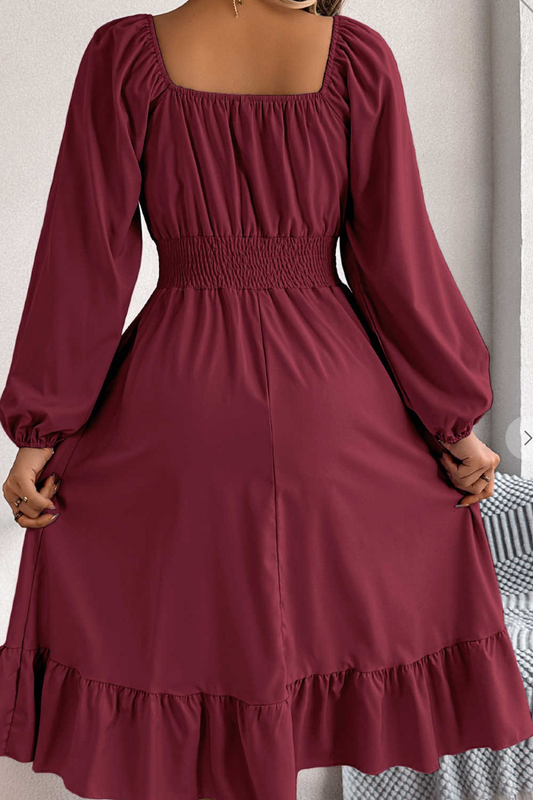 Square Neck Puff Sleeve Midi WINE