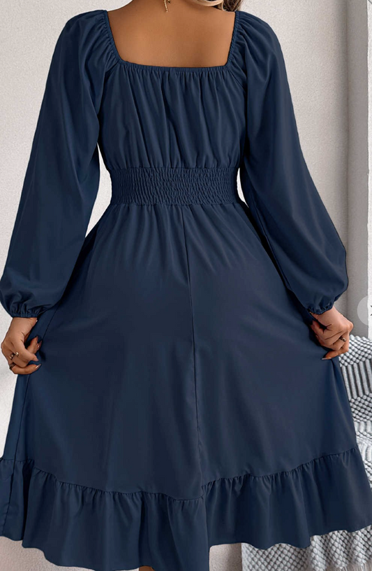 Square Neck Puff Sleeve Midi NAVY