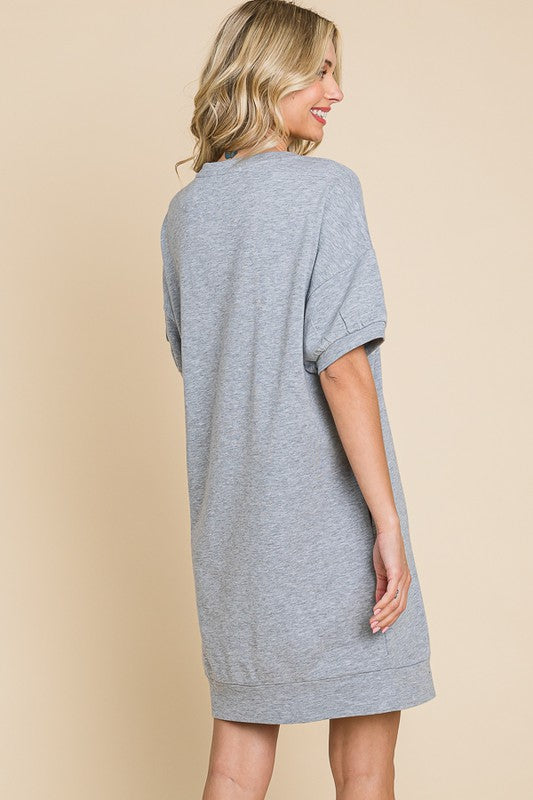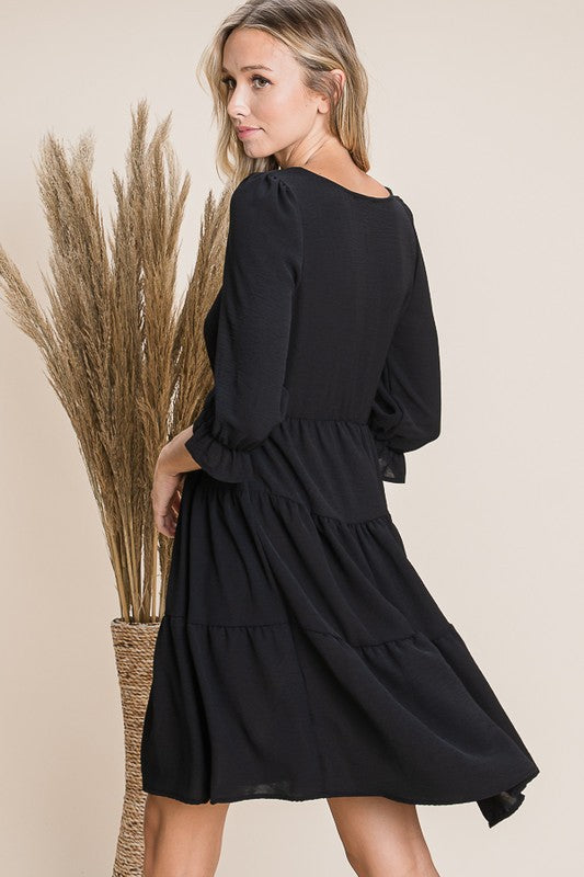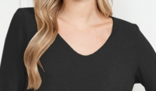 PS Solid 3/4 Sleeve V Neck Dress BLACK