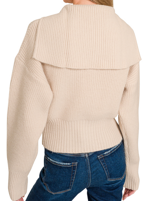Shawl Collar Rib Texture Sweater Cardi OATMEAL