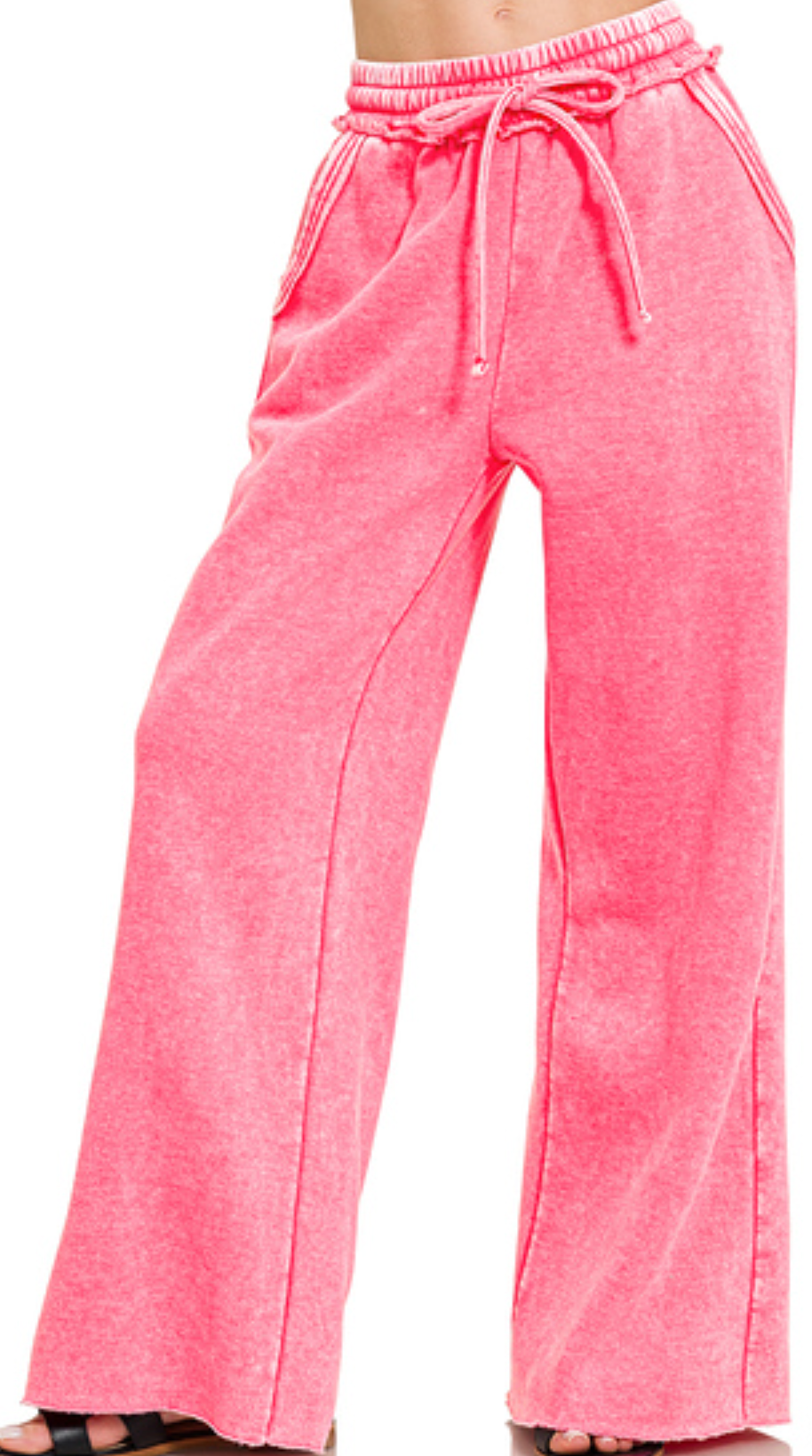 Acid Wash Palazzo Pants 30" FUCHSIA