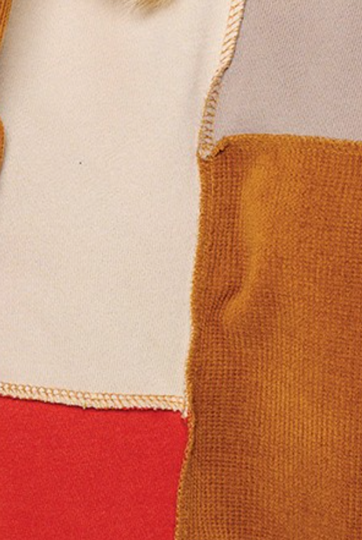 Embrace effortless style with the Boho Patchwork Hoodie SIENNA, designed for cozy fall and winter comfort. This pullover features a loose fit, drop shoulders, and long sleeves with raw edges, offering a relaxed, gypsy-inspired look. The multicolor patchwork and exposed contrast stitches add unique boho flair, while the front kangaroo pocket and straight hemline enhance everyday ease. Crafted from a soft 60% cotton, 40% polyester blend, it's perfect for yoga, casual wear, or layering up in cooler weather. Experience comfort and creativity in one versatile hoodie.