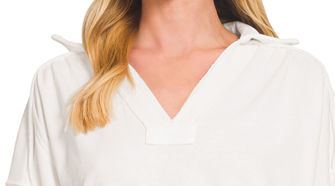 Effortless style meets comfort in this cropped French terry pullover. The soft blend of 65% polyester and 35% cotton creates a cozy, breathable fabric perfect for laid-back days. A classic collared neckline adds polish, while the ruched abdominal hem delivers a flattering, sculpted silhouette. Throw it on over your favorite tee or wear solo for an instantly put-together look that feels as good as it looks.