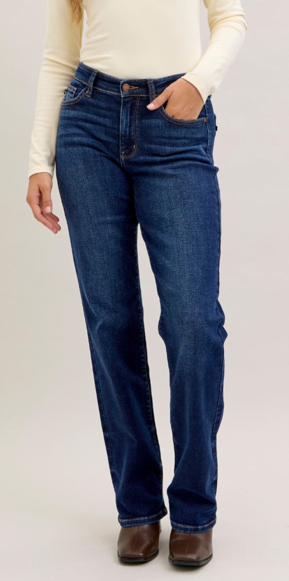 Rock that timeless denim look with these Judy Blue mid-rise straight jeans! Featuring a flattering 9.75" rise and a perfect 32" inseam, they're cut to keep you comfy all day long. The rich dark wash pairs with everything in your closet—dress them up or down and watch them become your go-to favorite. Classic style that never goes out of style!