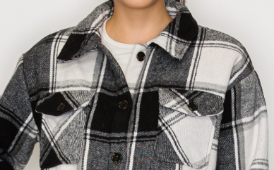Stay warm and stylish with the Lined Plaid Shacket B&W, a perfect blend of a cozy shirt and a warm jacket. Featuring a soft fur lining and classic black-and-white plaid, this shacket offers comfort and versatility for any season. Crafted from 100% polyester, it provides easy care and lasting durability. Ideal for layering, it adds a fashionable edge to your wardrobe while keeping you comfortably insulated throughout the day.