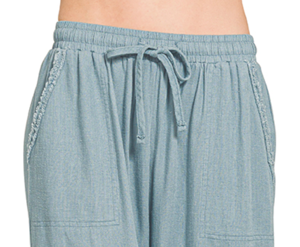 Pocketed Wide Leg Linen Blend 25.5" BLUE