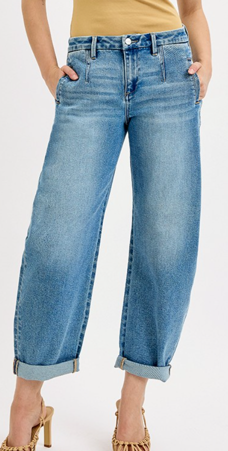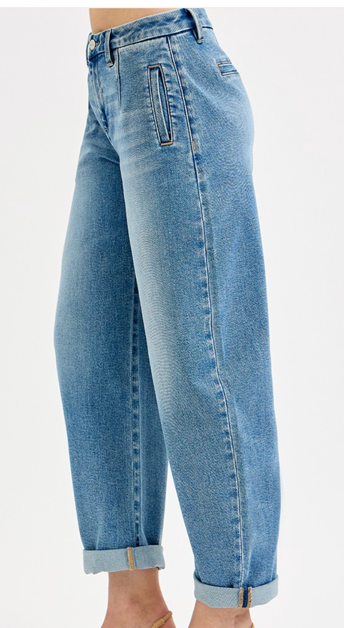 Experience effortless style with the RISEN Slouchy Barrel Roll Up Jeans, featuring a comfortable 10" rise and a versatile 26.5" inseam that extends to 29" when uncuffed. Crafted from a soft blend of cotton, polyester, rayon, and spandex, these jeans offer flexibility and durability. The roll-up cuff design allows you to switch up your look easily, perfect for both casual days and laid-back evenings. Embrace both comfort and style in one wardrobe essential.