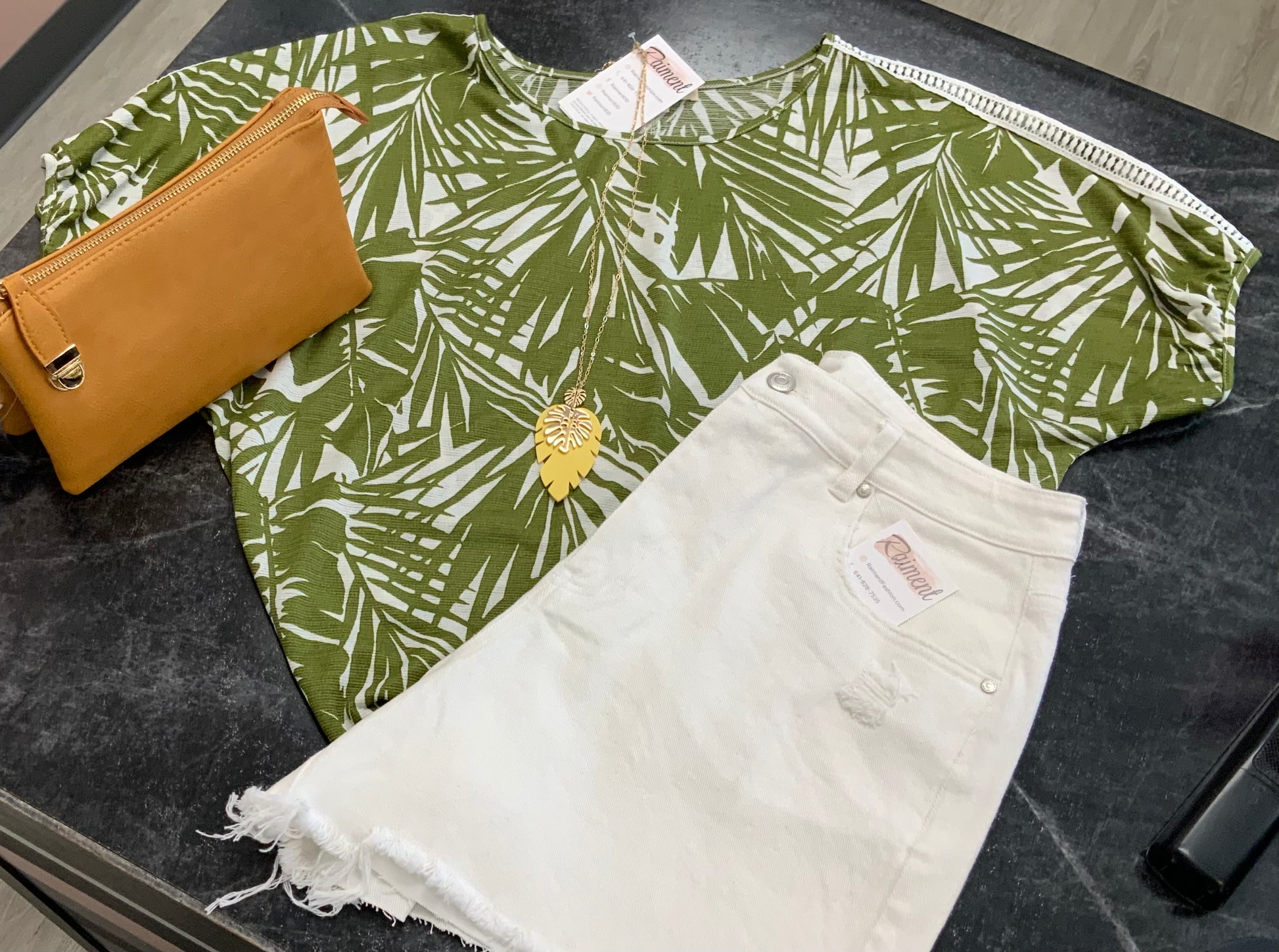 Elevate your wardrobe with the Tropical Crochet Shoulder in Olive. Featuring a flattering round neckline and delicate crochet sleeves with trim, this piece combines style and comfort effortlessly. Its regular fit and soft blend of 98% polyester and 2% spandex ensure a breathable, flexible wear perfect for warm days or layered looks. Add a touch of tropical charm to your everyday outfits with this versatile, eye-catching top.