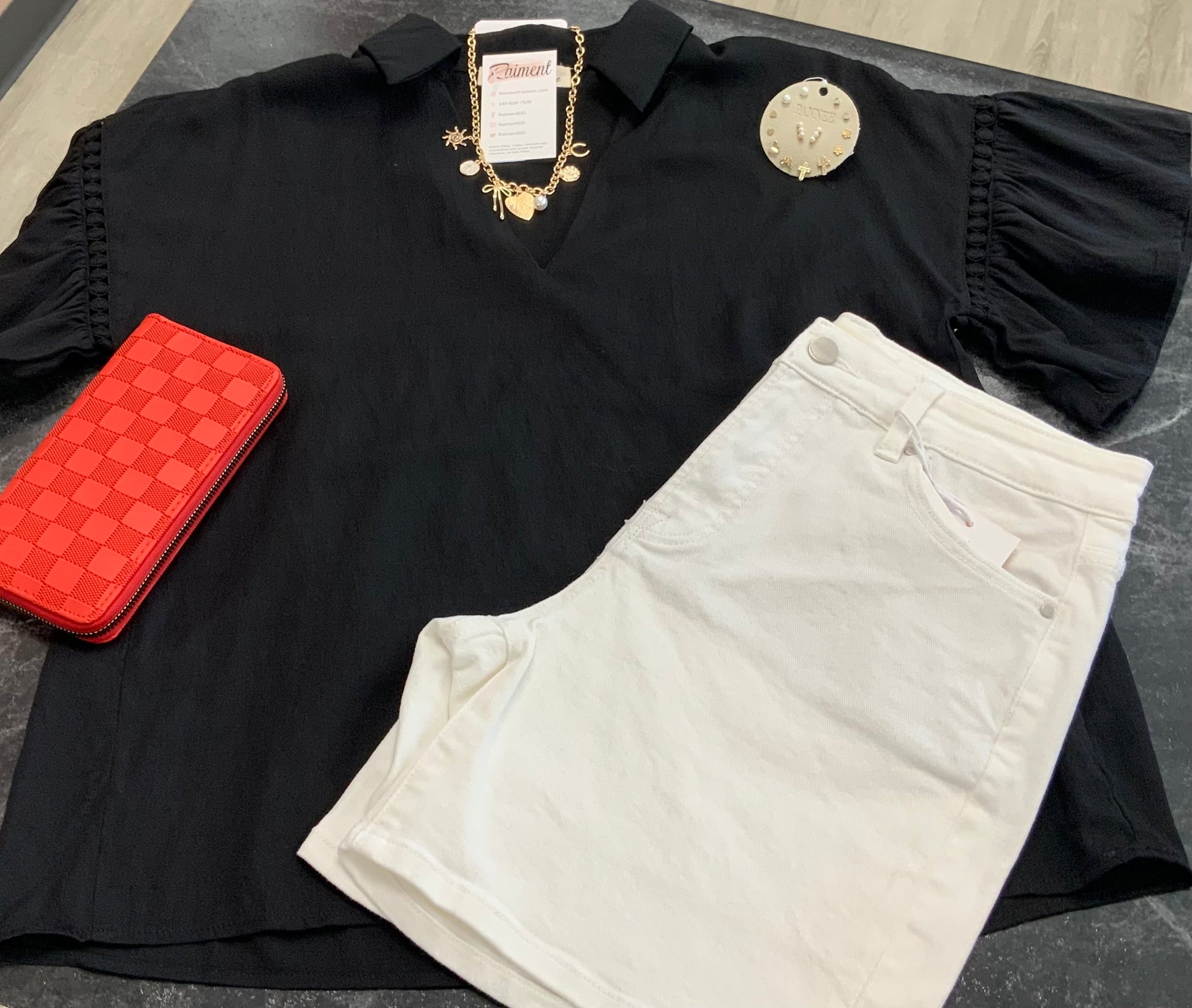 Elevate your wardrobe with this Woven Detail Ruffle Sleeve top. Crafted from a comfortable blend of 50% rayon and 50% polyester, it offers a soft feel and easy care. The delicate ruffle sleeves and classic collar neck add a feminine touch, making it perfect for both casual outings and office wear. Brighten your look effortlessly with this stylish, versatile piece.